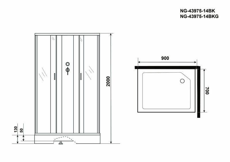 Душ.каб. NG-43975-14QBKG (900х700х2000) низкий поддон(13см) стекло МАТОВОЕ 3 места