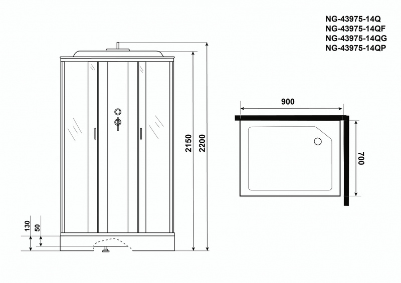 Душ.каб. NG-43975-14QP (900х700х2150) низкий поддон(13см) стекло МАТОВОЕ 3 места