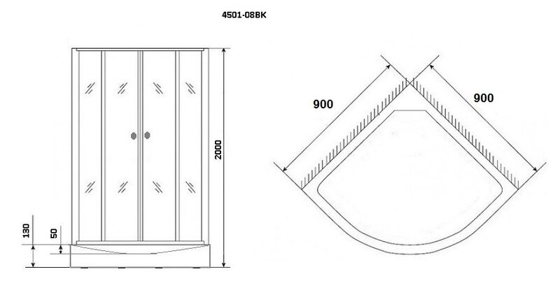 | Оснащение | Душевая лейка, сифон, полочка, вентиляция |