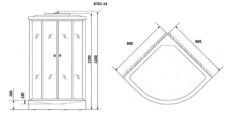Душ.каб. NG-6701-14 (900х900х2150) средний поддон(26см) стекло ПРОЗРАЧНОЕ черные профиля 4 места Т