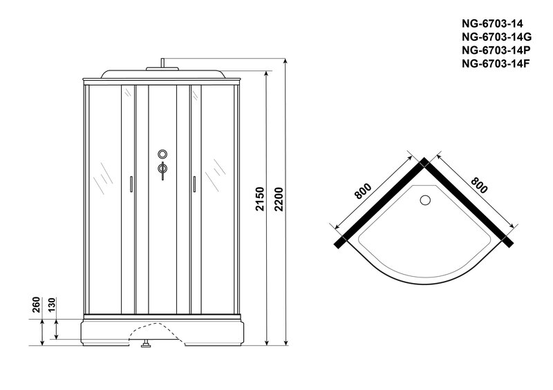 Душ.каб. NG-6703-14G (800х800х2150) средний поддон(26см) стекло ПРОЗРАЧНОЕ черные профиля 4 места
