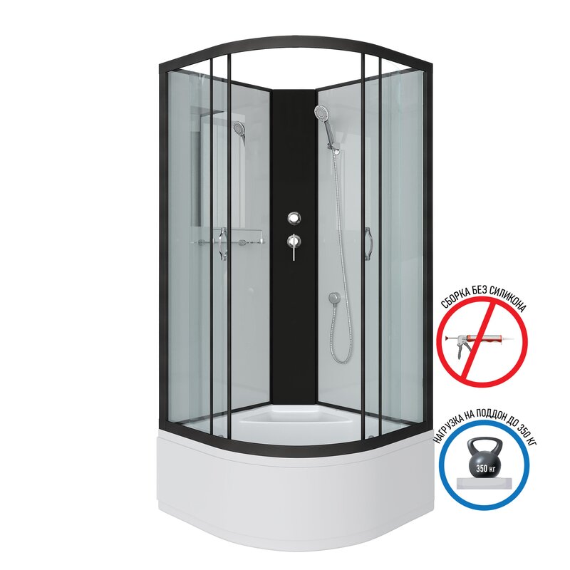 Душ.каб. NG-6707-14BK (800х800х2000) высокий поддон(40см) стекло ПРОЗРАЧНОЕ черные профиля 4 места