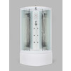 Оснащение Сифон с гофрой, Центральная стойка, Пульт, Радио, Боковая подсветка, Подсветка Принудительная вентиляция, Гидромассаж 6 форсунок, Тропический душ, Ручной душ 3-х режимный+крепление, Полка, Смеситель 3-х режимный, Сиденье отлито в поддоне.