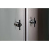 Раздвижные двери — это универсальная конструкция, занимающая минимум места в душевой кабине. Они удобны и функциональны, а также они предотвращают попадание воды за пределы пространства для мытья. Такая форма дверей может успешно герметизировать бокс, так что ни одна капля не окажется на полу. К тому же данная конфигурация не требует много места, что позволяет сэкономить пространство в ванной. Раздвижные двери не помешают уборке, ведь они не загораживают доступ к стенам и пространству душевой — в этом их неоспоримое преимуество.