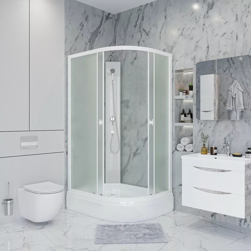 Душевые кабины со средним поддоном обладают следующими преимуществами.