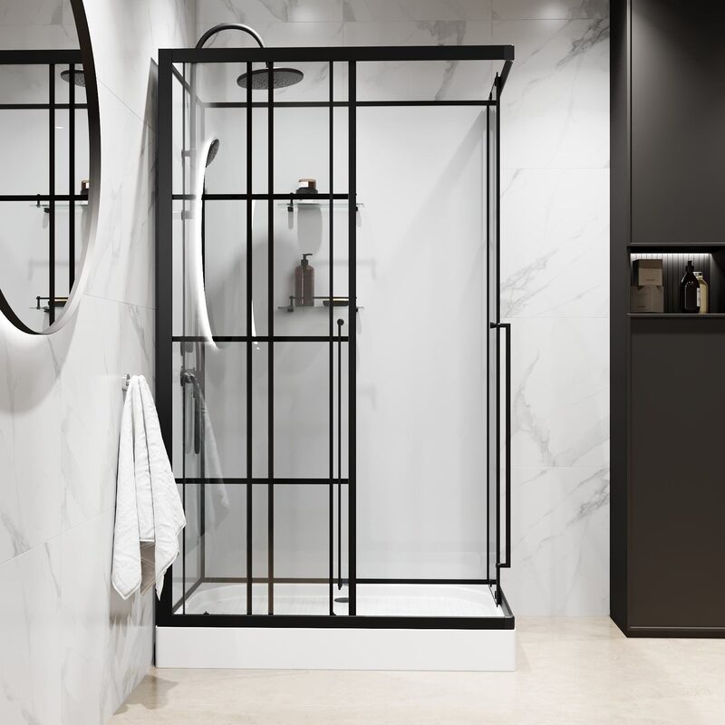 Раздвижные двери — это универсальная конструкция, занимающая минимум места в душевой кабине. Они удобны и функциональны, а также они предотвращают попадание воды за пределы пространства для мытья. Такая форма дверей может успешно герметизировать бокс, так что ни одна капля не окажется на полу. К тому же данная конфигурация не требует много места, что позволяет сэкономить пространство в ванной. Раздвижные двери не помешают уборке, ведь они не загораживают доступ к стенам и пространству душевой — в этом их неоспоримое преимуество.