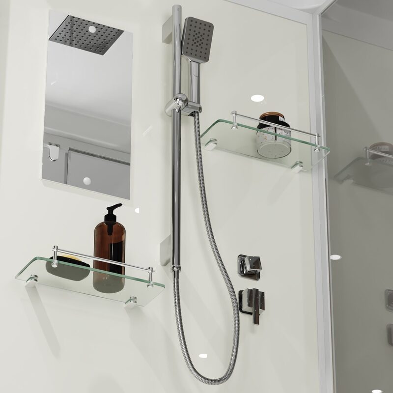 В последнее время душевые кабины приобретают все большую популярность благодаря тому что занимают меньше пространства, а на то чтобы принять душ уходит куда меньше времени, чем на плескания в ванной. Двери душевых кабин играют важную роль: они препятствуют попаданию воды на пол и стены ванной комнаты, что в свою очередь продлевает срок службы напольного и настенного покрытия. Они представляют из себя прозрачные, тонированные или матовые пластины из, как правило, тех же материалов, из которых состоят боковые стенки душевой кабины.