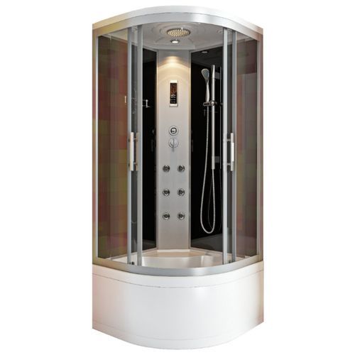 Душевая кабина Nova-San NS-3H-110G имеет удобное электронное управление. Габариты данной модели составляют ШхВхД (см): 110x215x110 см. Поддон имеет форму четверть круга, высоту 45 см, тип - высокий поддон. Материал изготовления поддона - акрил. Стекло используется тонированное (полупрозрачное). Кабина поставляется с крышей. Из особенностей данной модели стоит отметить, что у нее есть сиденье, есть гидромассаж. Наличие тропического душа: да.
