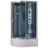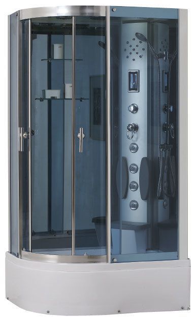 Дополнительные характеристики Вертикальный гидромассаж, гидромассаж спины, вентиляция, радио, дисплей, верхняя подсветка, подсветка панели управления, декоративная подсветка смеситель классический, тревожная кнопка, опционально: парогенератор, подключение CD, правосторонняя.