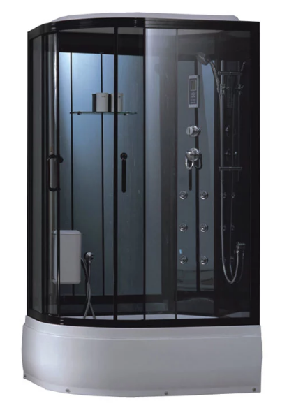 Дополнительные характеристики Вертикальный гидромассаж, гидромассаж спины, гидромассаж ног, вентиляция, радио, дисплей, смеситель классический, верхняя подсветка, опционально: парогенератор, подключение CD, правосторонняя.