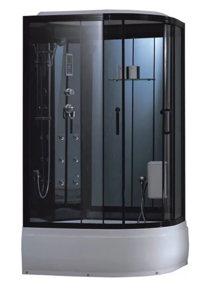 Дополнительные характеристики Вертикальный гидромассаж, гидромассаж спины, гидромассаж ног, вентиляция, радио, дисплей, смеситель классический, верхняя подсветка, опционально: парогенератор, подключение CD.