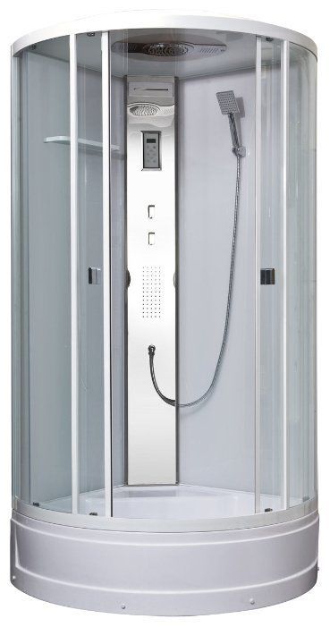 | Дополнительные характеристики | Толщина передних стенок 5 мм., вертикальный гидромассаж, гидромассаж спины, вентиляция, радио, дисплей, смеситель классический, верхняя подсветка. |