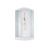 Модель угловая, занимает немного места. Такое ощущение, что при ее проектировке специально учитывалась возможность установки именно в небольшое помещение. Модель полностенная, закрытая со всех сторон стенками. Толщина полотна 4 мм, оно прочное. Двери матовые, непрозрачные, мне с такими мыться комфортнее. Профиль из алюминия, почти не покрывается ржавчиной. Белый цвет профиля делает уборку более легкой, на нем не так сильно (как на темном) видны следы от мыла и шампуня. А вообще считаю, что если вовремя убираться, то никаких мыльных разводов в кабине не будет. Цена-качество совпали, выбором довольна.
