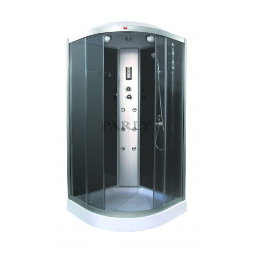 | Дополнительные характеристики | Низкий поддон, Сенсорный пульт Touch-Screen, РАДИО, вентилятор, подсветка, полка, верхний душ, ручной душ, спинной массаж, 6 форсунок, передние стекла тонированные, задние стекла черные. |