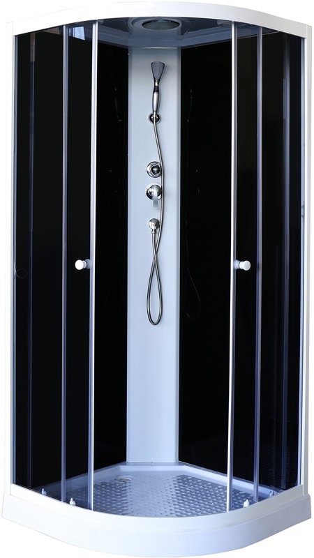 | Дополнительные характеристики | Стекло:тонированное закаленное, 4 мм. Стенки:закаленное стекло чёрное, 4мм. Профиль: белый, алюминиевый. Центральная панель серебристая. |