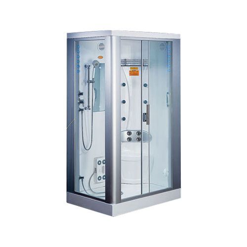 | Дополнительные характеристики | Вертикальный гидромассаж, гидромассаж ног, озонирование, вентиляция, радио, дистанционное управление, верхняя подсветка, стекло: прозрачное, синее. |