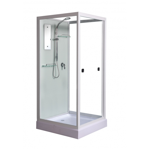 | Оснащение | БЕЗ КРЫШИ * верхний душ на штанге * ручной душ 3х позиционный на штанге * штанга для верхнего и ручного душа * зеркало * смеситель *полка 2 шт * поддон 15 см |