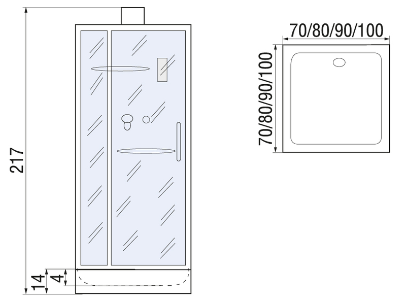 Форма поддона – квадратная отлично подходит для помещений, ограниченных по площади. Стандартные габариты таких поддонов составляют 90*90 см, что вполне достаточно для принятия душа без риска упираться коленями или локтями в стены или дверки кабинки. Для изготовления таких поддонов используются разные материалы, безопасность обеспечивает противоскользящее покрытие или специальный рельеф. Слив может находиться по центру, около одной из сторон или в углу поддона. Высота бортов также может быть различной, что зависит от назначения и особенностей использования душевой кабины.