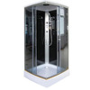 Форма поддона – квадратная отлично подходит для помещений, ограниченных по площади. Стандартные габариты таких поддонов составляют 90*90 см, что вполне достаточно для принятия душа без риска упираться коленями или локтями в стены или дверки кабинки. Для изготовления таких поддонов используются разные материалы, безопасность обеспечивает противоскользящее покрытие или специальный рельеф. Слив может находиться по центру, около одной из сторон или в углу поддона. Высота бортов также может быть различной, что зависит от назначения и особенностей использования душевой кабины.