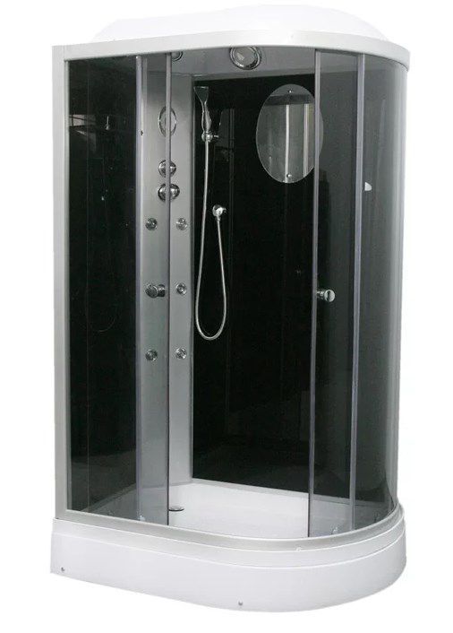| Дополнительные характеристики | Акриловый поддон на каркасе Тип закрытая кабина левосторонняя Радио, верхняя подсветка, вертикальный гидромассаж, гидромассаж спины, вентиляция Толщина передних стенок 5 мм |