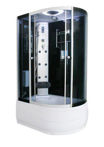 Дополнительные характеристики Сиденье отлито в поддоне Акриловый поддон на каркасе Тип закрытая кабина правосторонняя Радио, верхняя подсветка, вертикальный гидромассаж, гидромассаж спины, гидромассаж ног, декоративная подсветка, вентиляция Толщина передних стенок 5 мм