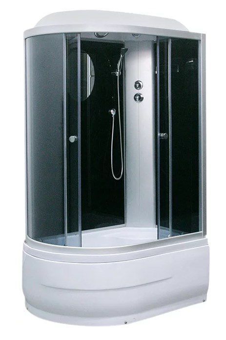 Размер 90*120. Темный цвет задней панели. Акриловый высокий поддон. Тонированные раздвижные двери. Тропический душ. Зеркало. Цена.