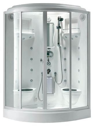| Дополнительные характеристики | Двухместная, полностенная, 2 створки двери, вертикальный гидромассаж, гидромассаж ног, гидромассаж спины, гидромассаж зоны шеи, турецкая баня, таймер, тропический душ, озонирование, вентиляция, подключение к CD, радио, телефон (громкая связь), дисплей, кл |