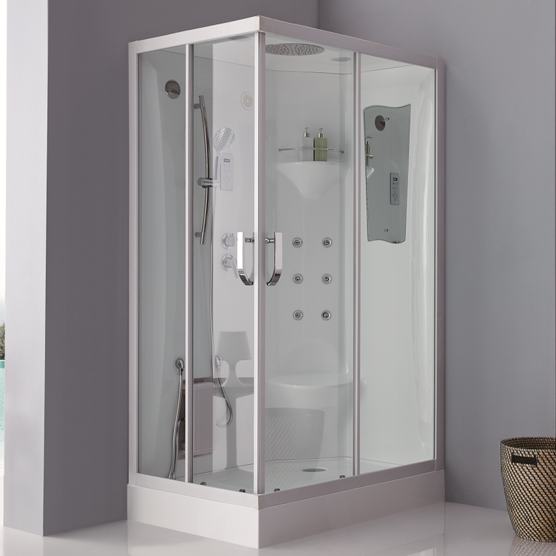 | Оснащение | Поддон, полки, душевая лейка, FM радио + BLUETOOH, озонатор, парогенератор, зеркало, массажор ног, 2 аудиодинамика, вытяжка |
