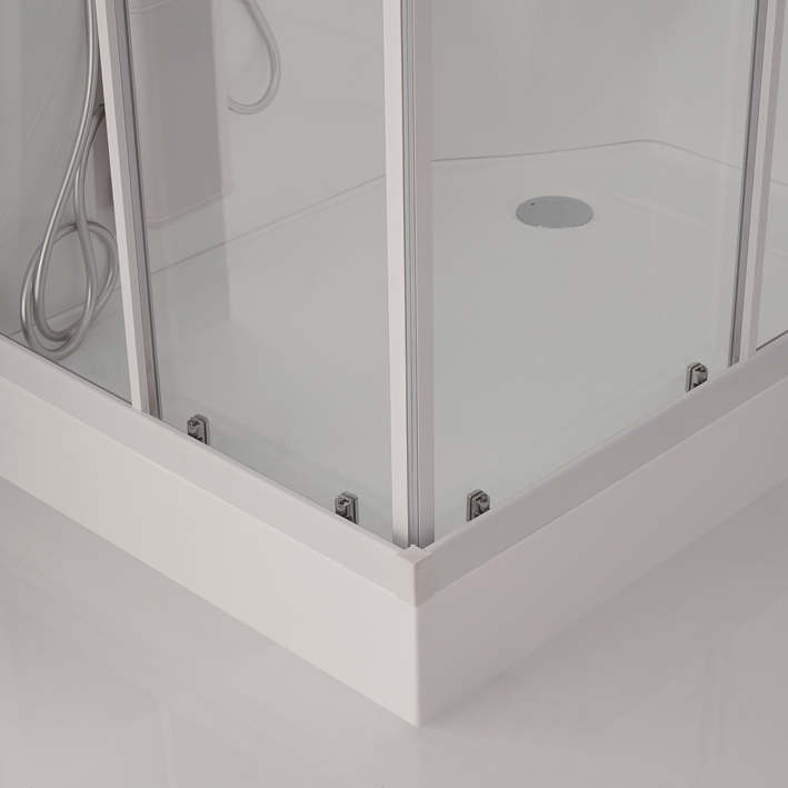 Раздвижные двери — это универсальная конструкция, занимающая минимум места в душевой кабине. Они удобны и функциональны, а также они предотвращают попадание воды за пределы пространства для мытья. Такая форма дверей может успешно герметизировать бокс, так что ни одна капля не окажется на полу. К тому же данная конфигурация не требует много места, что позволяет сэкономить пространство в ванной. Раздвижные двери не помешают уборке, ведь они не загораживают доступ к стенам и пространству душевой — в этом их неоспоримое преимуество.