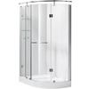Форма поддона – ассиметричная, такой вариант обычно используется для ванных комнат с неправильной или сложной конфигурацией, при необходимости максимально использовать свободное пространство в маленьких санузлах. Чаще всего – это разновидность прямоугольного поддона с одним скругленным углом. При этом зауженная торцевая часть освобождает пространство, позволяет установить в ванной стиральную машину или раковину. Форма эргономичная, она кажется на первый взгляд нестандартной, однако относится к наиболее удобным и практичным.