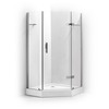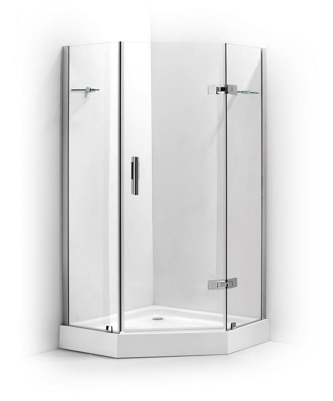 Форма поддона – многогранная, предназначенная для угловой установки. Конструкция используется при необходимости правильной организации пространства, использования площади небольшого санузла или в ванным с нестандартной, сложной конфигурацией. Визуально такой поддон кажется большим, но на самом деле он занимает не так много места. Особая многогранная форма отличается хорошей эргономикой, принимать душ будет удобно даже людям с крупной комплекцией. Минимальная длина поддона может составлять 80 см, максимальная – 120 см и даже больше, выбор зависит от площади ванной комнаты.
