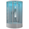 | Дополнительные характеристики | Полностенная, толщина стенок 6 мм, 2 створки двери, вертикальный гидромассаж, гидромассаж спины, тропический душ, вентиляция, радио, классический смеситель, дисплей, гидрофобное покрытие, верхняя подсветка, подсветка панели управления, многоцветная подсве |