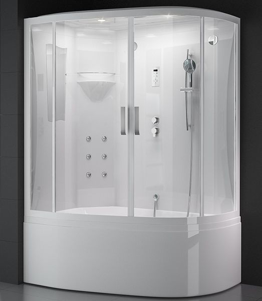 | Дополнительные характеристики | Левосторонняя, полностенная, 2 створки двери, вертикальный гидромассаж, 6 форсунок, гидромассаж ног, гидромассаж спины тропический душ, вентиляция, радио, телефон (громкая связь), защита от перегрева, дисплей, классический смеситель, верхняя подсветка, по |