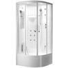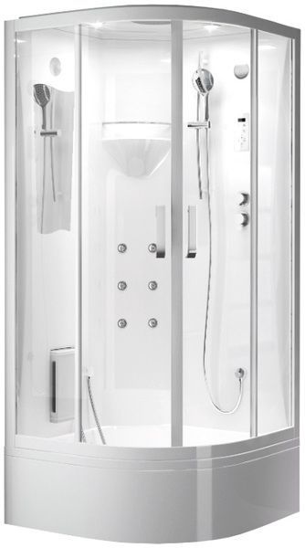 | Дополнительные характеристики | Полностенная, толщина стенок 6 мм, 2 створки двери, вертикальный гидромассаж, 6 форсунок, гидромассаж спины, гидромассаж ног, ручной душ, тропический душ, вентиляция, радио, телефон (громкая связь), защита от перегрева, классический смеситель, дисплей, ве |