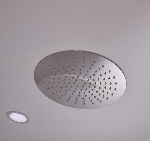 Кроме смесителя с переключателями и форсунок в кабине есть еще и блок управления. Он расположен на задней стенке душевой кабины и имеет вид области (прямоугольной, квадратной, овальной и т.д.) с кнопками или чувствительной сенсорной поверхностью. Может быть оснащен дисплеем. Иногда эту панель называют и пультом. Устройство позволяет: