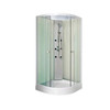 Кабинка хорошая, выбрали эту модель из-за низкого поддона. Кабинка отлично вписалась в угловое пространство. Есть гидромассаж, но нет тропического душа. Очень советую эту кабинку, у кого лишний вес для удобства залезания в неё. Не хватает полочки под шампуни и зеркала. Она у нас уже год, но покупали на другом сайте. Здесь решила оставить отзыв для тех, кто интересуется ею. На дверях остаются отпечатки пальцев и подтёки воды. Но в целом очень хорошее качество за свои деньги.