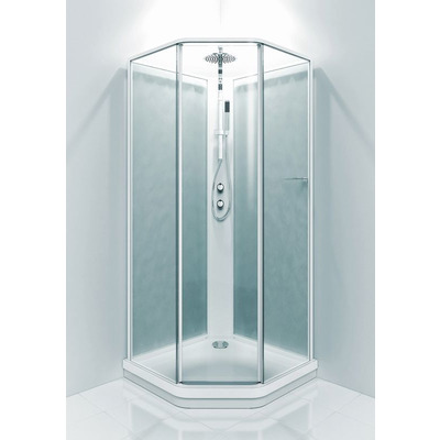 Форма поддона – многогранная, предназначенная для угловой установки. Конструкция используется при необходимости правильной организации пространства, использования площади небольшого санузла или в ванным с нестандартной, сложной конфигурацией. Визуально такой поддон кажется большим, но на самом деле он занимает не так много места. Особая многогранная форма отличается хорошей эргономикой, принимать душ будет удобно даже людям с крупной комплекцией. Минимальная длина поддона может составлять 80 см, максимальная – 120 см и даже больше, выбор зависит от площади ванной комнаты.