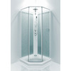| Дополнительные характеристики | Поддон из литого мрамора с ножками и колесиками Комплект для подкл.к канализации Фильтр-сито для сбора волос Термостатический смеситель Ручной душ Верхняя лейка тропический дождь Безопасное закаленное стекло 4 и 6 мм Дверной проем 46 см Высота 217см, внут |