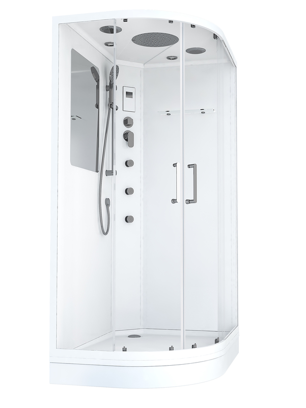 | Оснащение | Душевая лейка, полочка, зеркало, подсветка, FM радио, BLUETOOTH, мультимедийная колонка, вытяжной вентилятор |