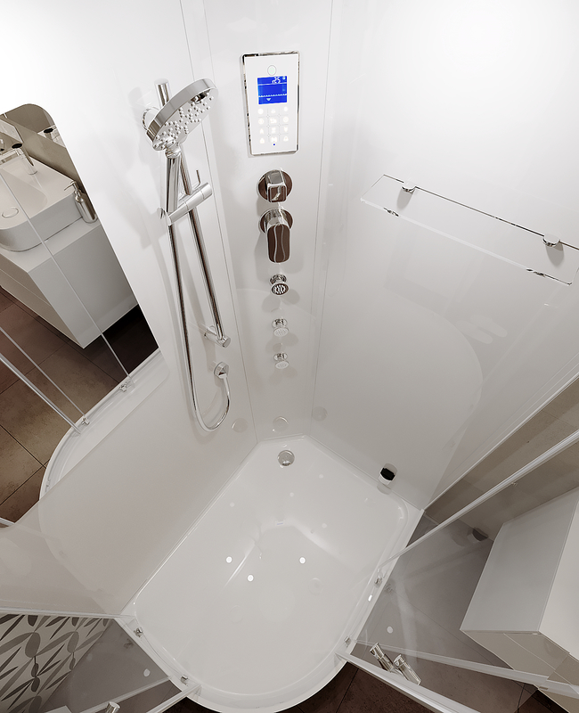 Электронное управление — это важная характеристика, которая напрямую влияет на выбор конкретной модели. Намного удобнее использовать душевую кабину, в которой управление реализовано посредством панели управления на стенке изделия, а также дистанционного пульта. В отличие от механических кабин, такой вариант требует подключения к электросети, однако дает множество возможностей. Например, вы сможете включить освещение внутри кабины, вентиляцию, музыку или радио, или даже запрограммировать изделие.