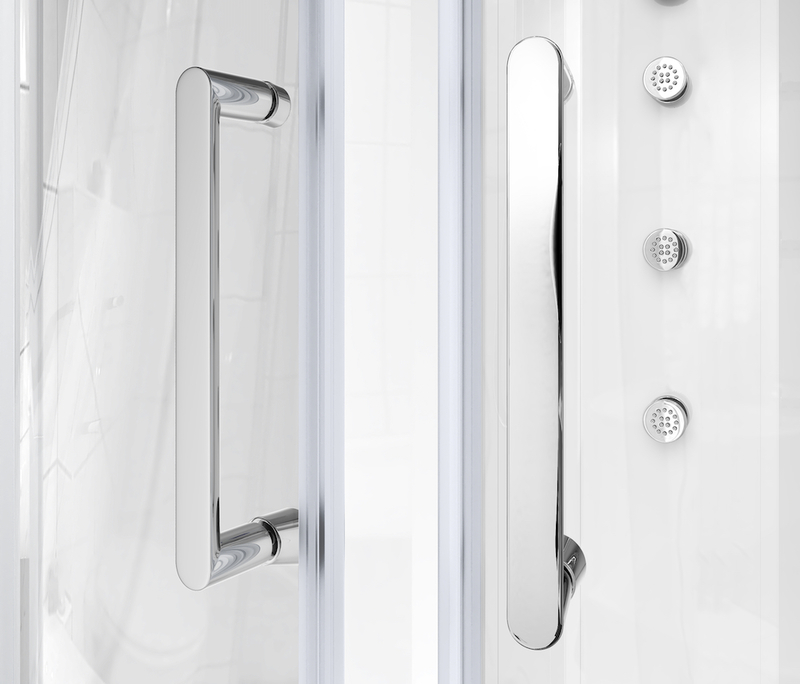 Раздвижные двери — это универсальная конструкция, занимающая минимум места в душевой кабине. Они удобны и функциональны, а также они предотвращают попадание воды за пределы пространства для мытья. Такая форма дверей может успешно герметизировать бокс, так что ни одна капля не окажется на полу. К тому же данная конфигурация не требует много места, что позволяет сэкономить пространство в ванной. Раздвижные двери не помешают уборке, ведь они не загораживают доступ к стенам и пространству душевой — в этом их неоспоримое преимуество.