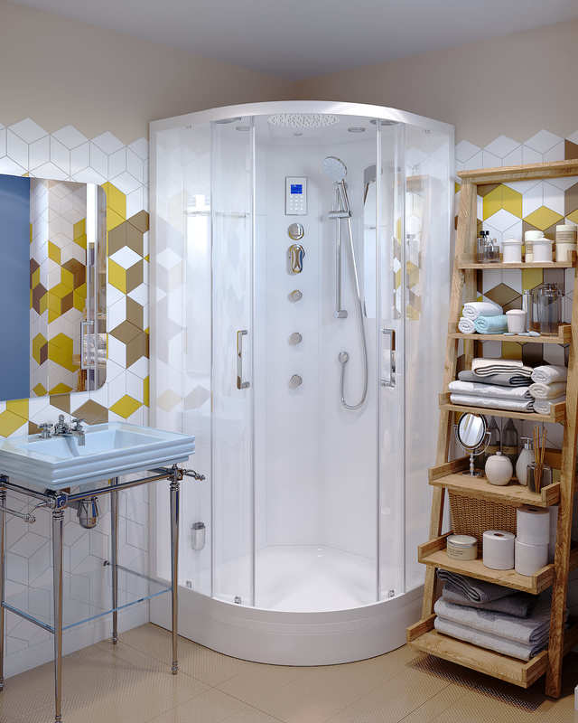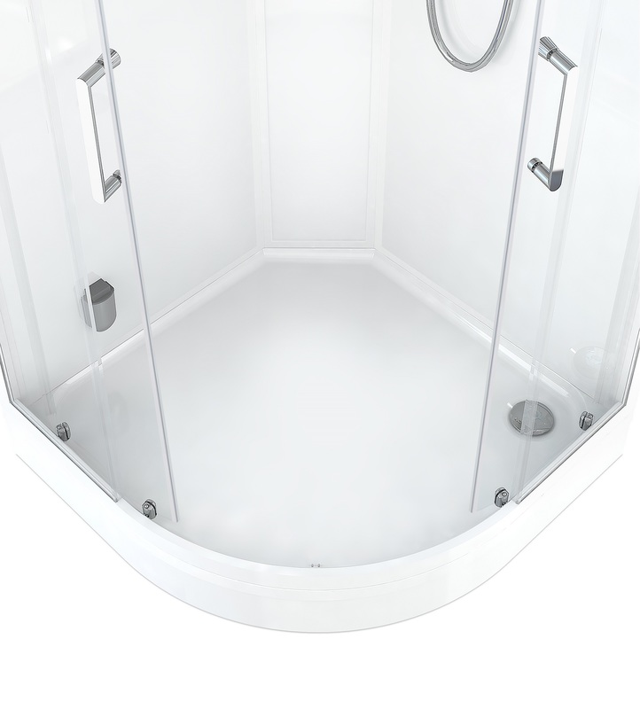 Форма поддона – четверть круга, такой вариант подходит для небольших и очень маленьких ванных. Душевой бокс монтируется в углу, максимально используя пространство. При этом кабинка остается удобной в эксплуатации, имеет достаточно места для установки душевого комплекта, небольшого раскладного сиденья при необходимости. Сегодня производители предлагают поддоны с формой четверть круга и для больших ванных. Такое решение повышает коэффициенты использования полезного пространства, позволяют правильно его организовать и сделать более практичным.