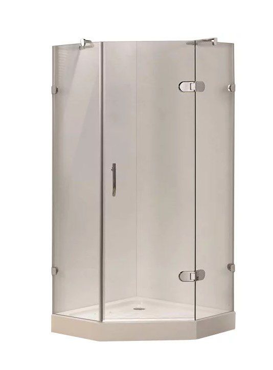 Форма поддона – многогранная, предназначенная для угловой установки. Конструкция используется при необходимости правильной организации пространства, использования площади небольшого санузла или в ванным с нестандартной, сложной конфигурацией. Визуально такой поддон кажется большим, но на самом деле он занимает не так много места. Особая многогранная форма отличается хорошей эргономикой, принимать душ будет удобно даже людям с крупной комплекцией. Минимальная длина поддона может составлять 80 см, максимальная – 120 см и даже больше, выбор зависит от площади ванной комнаты.