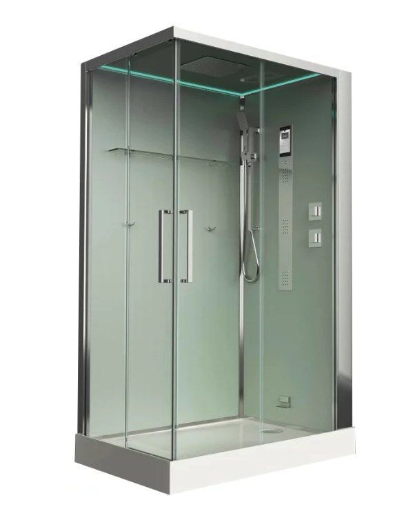 | Дополнительные характеристики | Тип закрытая кабина правосторонняяАкриловый поддон с усиленным каркасом и сифоном.Хромотерапия - 7 цветов.Сенсорный пульт управления. Fm - радио. Вентиляция.Турецкая баня. Гидромассаж спины.Стеклянная крыша. Тропический душ из нержавеющей стали.Лей |
