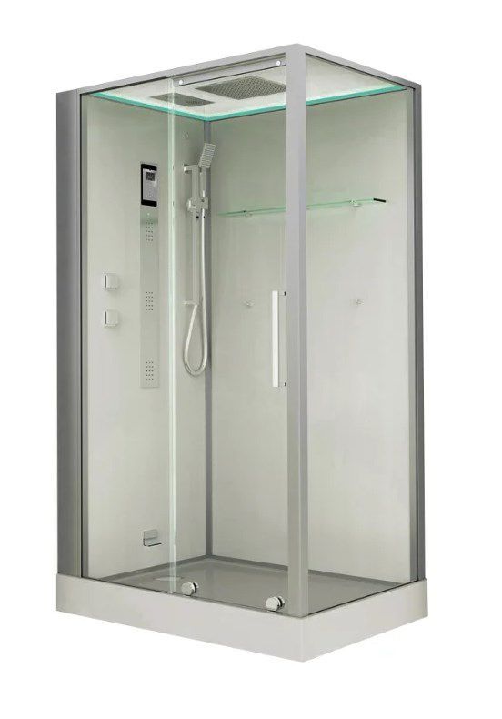 | Дополнительные характеристики | Тип закрытая кабина левосторонняяАкриловый поддон с усиленным каркасом и сифоном.Хромотерапия - 7 цветов.Сенсорный пульт управления. Fm - радио. Вентиляция.Турецкая баня. Гидромассаж спины.Стеклянная крыша. Тропический душ из нержавеющей стали.Лейк |