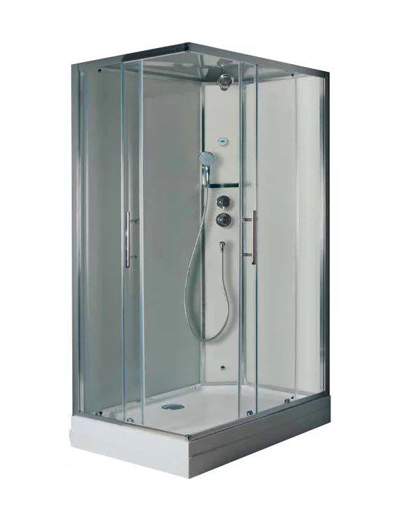 | Дополнительные характеристики | Тип закрытая кабина правосторонняя Акриловый поддон со съемным экраном. Диаметр сифона для поддона 90mm. Стеклянные задние стенки из закаленного ударопрочного стекла суперсветлого оттенка. Раздвижные двери толщиной 6 мм. Двойные ролики. Анодированный, алю |