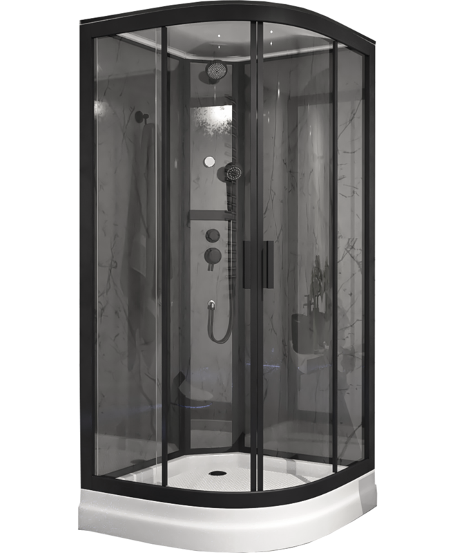 Форма поддона – четверть круга, такой вариант подходит для небольших и очень маленьких ванных. Душевой бокс монтируется в углу, максимально используя пространство. При этом кабинка остается удобной в эксплуатации, имеет достаточно места для установки душевого комплекта, небольшого раскладного сиденья при необходимости. Сегодня производители предлагают поддоны с формой четверть круга и для больших ванных. Такое решение повышает коэффициенты использования полезного пространства, позволяют правильно его организовать и сделать более практичным.