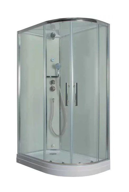 | Дополнительные характеристики | Тип закрытая кабина левосторонняя Акриловый поддон со съемным экраном. Диаметр сифона для поддона 90mm. Стеклянные задние стенки из закаленного ударопрочного стекла суперсветлого оттенка. Раздвижные двери толщиной 6 мм. Двойные ролики. Анодированный, алюм |