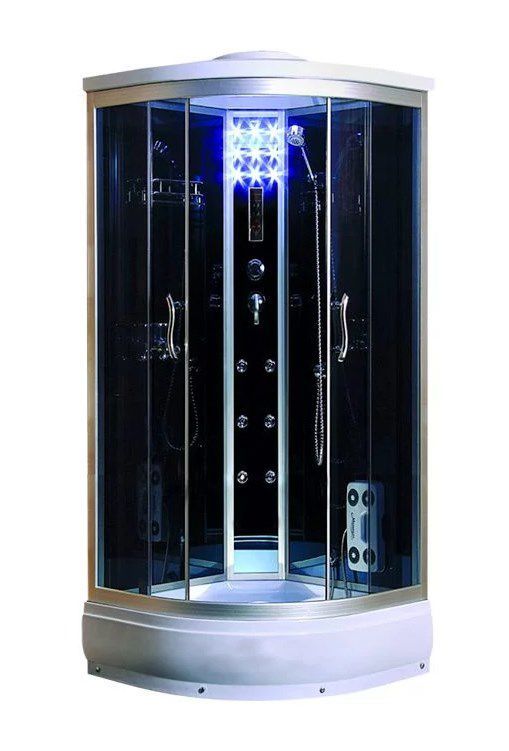 | Дополнительные характеристики | Тип закрытая кабинаАкриловый поддон с сифоном и усиленным каркасом. Анодированный алюминиевый профиль (матовый хром). Закаленное ударопрочное безопасное стекло толщиной 5 мм. Сенсорный пульт управления. Подсветка верхняя и боковая. FM-радио. Вентиляция. |