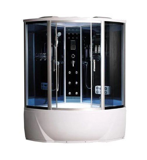 | Дополнительные характеристики | Поддон акрил Тип комбинированная закрытая кабина Съемный экран. Сливная система clik-clak со сливом-переливом. Анодированный алюминиевый профиль (матовый хром). Закаленное ударопрочное безопасное стекло толщиной 5 мм. Сенсорный пульт управления. Подсветка |